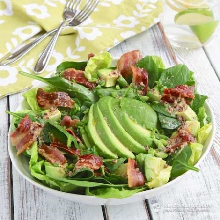Meanwhile, whisk together the red wine vinegar, mustard & honey with 2 tbsp olive oil and season. Divide the spinach, avocado, bacon and croutons between 2 plates. Drizzle the dressing over and serve.
