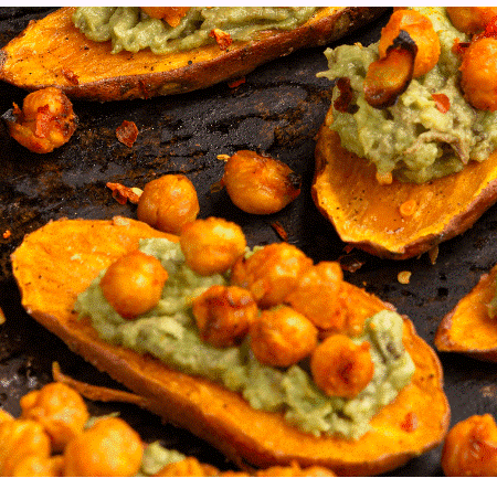 Slice a sweet potato lengthways into quarter-inch slices, whack it in your toaster on the highest setting and toast until they’re slightly browned. Top with nut butter, avocado and hummus, or get creative with blue cheese, ricotta, fruit, nuts and honey. Another yummy combination is vegemite, braised English spinach and egg